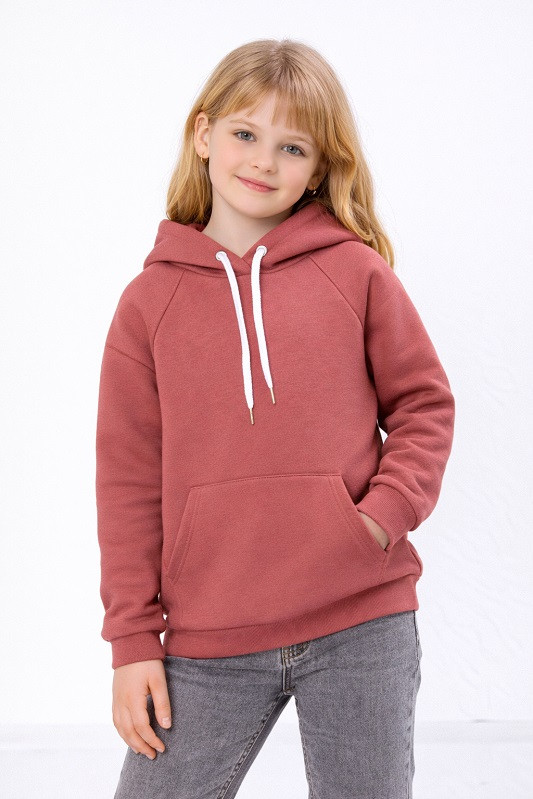 Худі для дівчинки — ідеальний вибір для стильного та зручного повсякденного образу. Виготовлена з м'якого гладкого трикотажу трьохнитка з флісом усередині, який надає їй неймовірної м'якості та пухнастості, забезпечуючи комфорт упродовж усього дня в прохолодну погоду. Худі має капюшон, манжети на рукавах та на поясі.