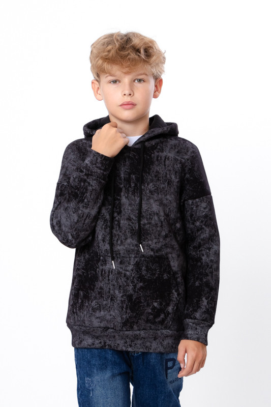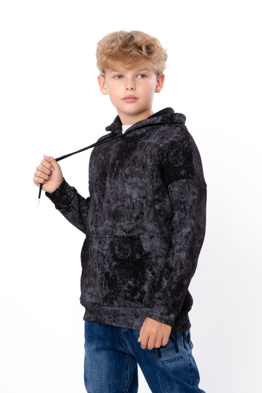 Це теплий дитячий худі з тринитки — ідеальний вибір для активних підлітків, які люблять комфорт та свободу рухів. М'яка тканина зберігає тепло, а спущений рукав забезпечує додатковий комфорт. Зручна кишеня кенгуру підійде для маленьких скарбів або для зігрівання рук. Цей худі стане улюбленим вибором для ігор, прогулянок та повсякденних пригод, адже він стильний і практичний водночас.