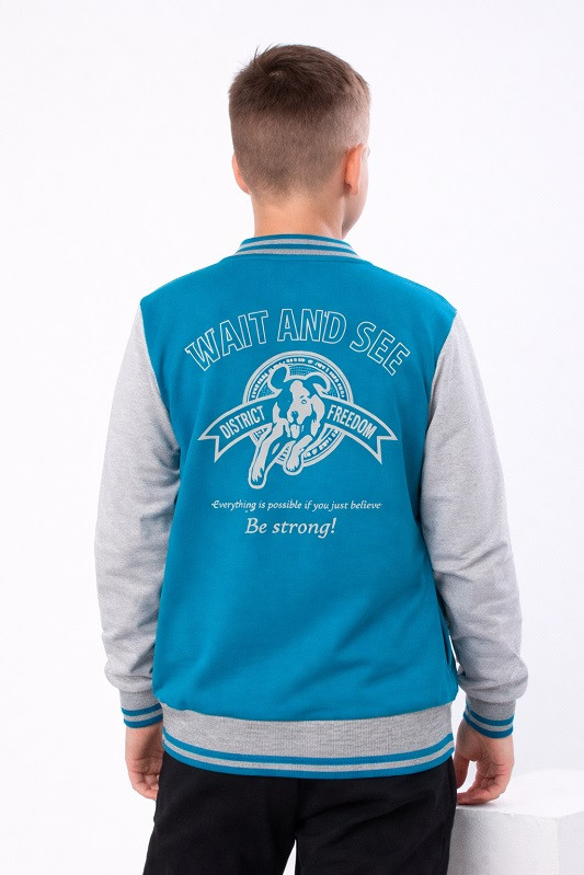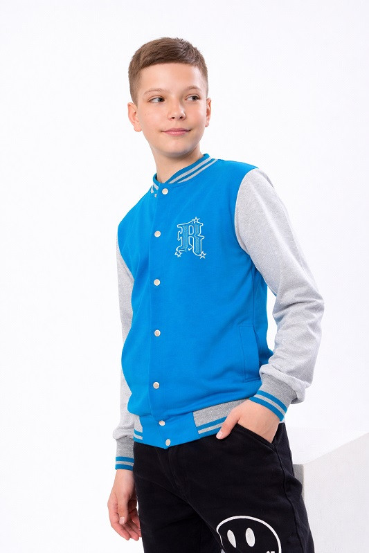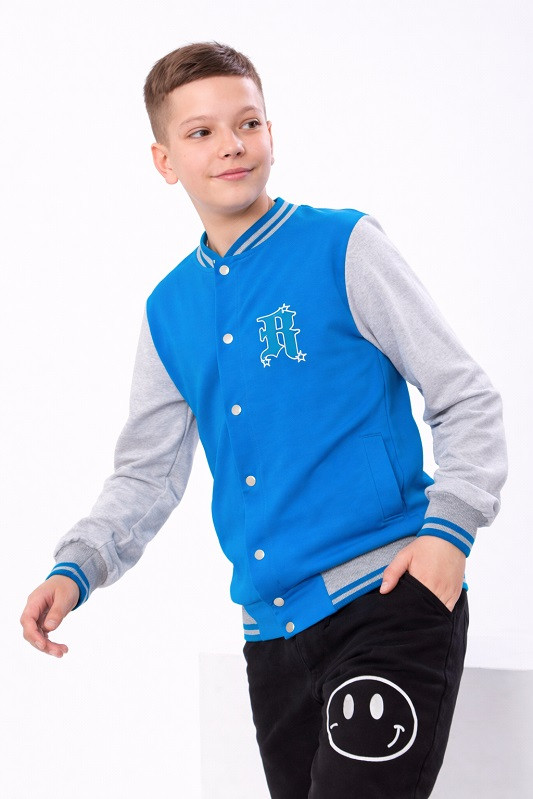 Бомбер для хлопчика - це актуальний тренд, який повинен бути в гардеробі кожного підлітка! Бавовняна курточка виготовлена з футера двонитка. Склад: 80% бавовни та 20% поліестер, що забезпечує комфортне носіння. За рахунок вільного крою універсальний джемпер. Трикотажний бомбер відмінно впишеться у повсякденний гардероб-тренд 2023 року. Основна застібка на металевих кнопках еластичні манжети на рукавах, по низу виробу, комір-стійка надійно захистять дитину від вітру та проникнення холоду. Бічні кишені зручні для речей та дрібниць вашої дитини. Тканина якісна, не сідає, не фарбується, не розтягується, дихаюча підійде на літні вечори. Такий бомбер органічно підлаштовується під будь-який варіант низу: класичний, кежуал, спортивний. Можна носити зі штанами для походу до школи. Трендова куртка оверсайз відмінно виглядатиме на дитині будь-якої комплекції. Ця покупка буде найкращим подарунком для ваших дітей.