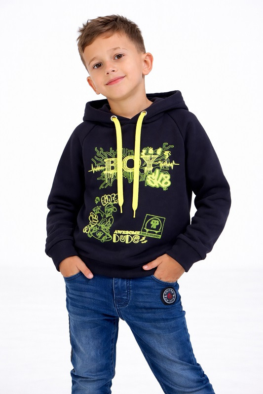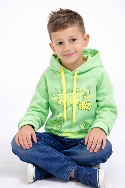 Вільне трикотажне худі обов'язково сподобається маленьким модникам, що люблять одяг у стилі oversize. Кофта з довгими рукавами, великим капюшоном має неймовірно стильний зовнішній вигляд і забезпечить дітям належний комфорт. Щільна тканина на основі бавовни (футер з начосом), з якої виготовлений модний світшот, дуже м'яка і тепла, не линяє і не розтягується навіть при активному повсякденному носінні. Дитині в такому милому худі буде дуже затишно як холодною зимою, так і навесні, і восени. Стильне бавовняне худі нейтрального кольору можна одягнути в зимовий, весняний і осінній період в школу, в садок або носити вдома. Трикотаж дозволяє тілу дихати і не подразнює шкіру. Скласти із цією об'ємною толстовкою модний костюм простіше простого. Вона поєднується із брюками, спортивними штанами та джинсами Під низ худи завжди можна одягнути футболку чи майку.