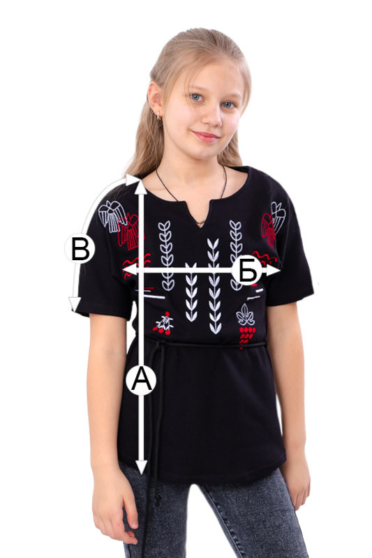Чорна вишиванка для дівчинки з чарівним орнаментом птахів і колосків у біло-червоних відтінках – це символ гармонії, достатку та свободи. Витончені птахи у вишивці уособлюють душевну легкість і мрійливість, а колосся – благополуччя та зв’язок з рідною землею. Натуральна тканина дарує комфорт, а зручний крій дозволяє вільно рухатися.Доповнена поясом. Чудовий вибір для святкових подій та сімейних заходів! Ця вишиванка стане яскравим акцентом у гардеробі вашої дитини та чудовим символом українських традицій! Ідеально поєднується з класичними брюками чи спідницями.
