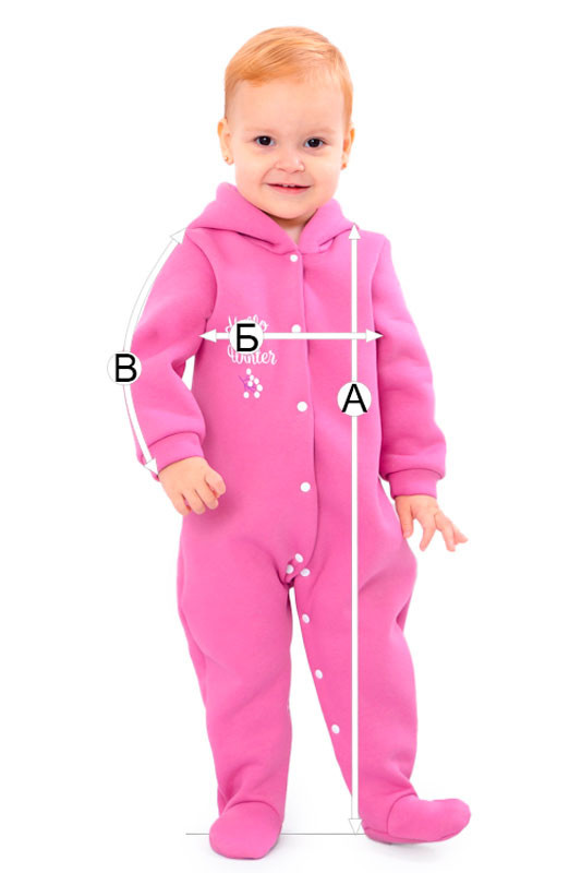 | А - Довжина комбінезону від плеча (+/-2см) | 57 | 61 | 66 | 71 |