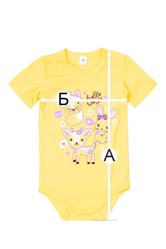 Боді для дівчинки з однотонного куліру. Боді має короткі рукавчики. На плечі, а також по низу є застібки на кнопки для зручності вдягання. Спереду на боді накатний малюнок. Кулір – легкий, натуральний за складом матеріал - ідеальний варіант для ніжної шкіри малюка в спекотну погоду. Гарний варіант для щоденного використання.