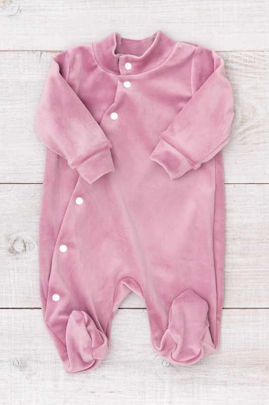 Ніжний ясельний комбінезон із велюру-плюшу створений спеціально для маленьких дівчаток. М’який рожевий відтінок надає виробу делікатного, охайного вигляду, а тепла та приємна тканина робить його незамінним у щоденному догляді за немовлям.