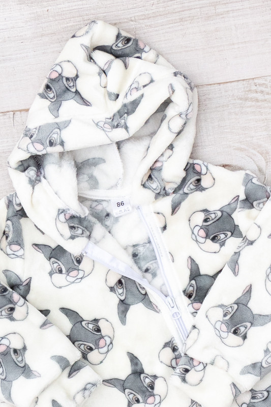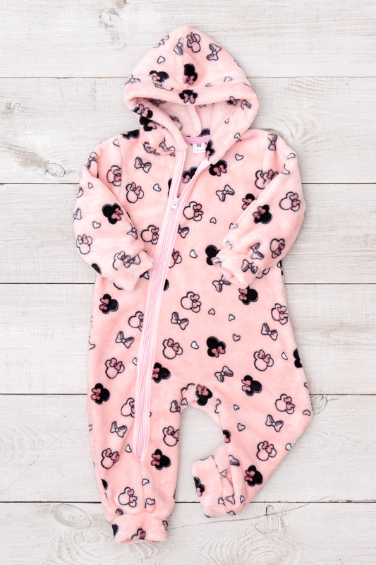 Тепло, комфорт та затишок об'єднав у собі представлений комбінезон. Виріб застібається на блискавку, яка розташована навскіс від самого верху і до низу однієї ніжки. Края рукавів та ніжок оброблені манжетами, а також має капюшон.