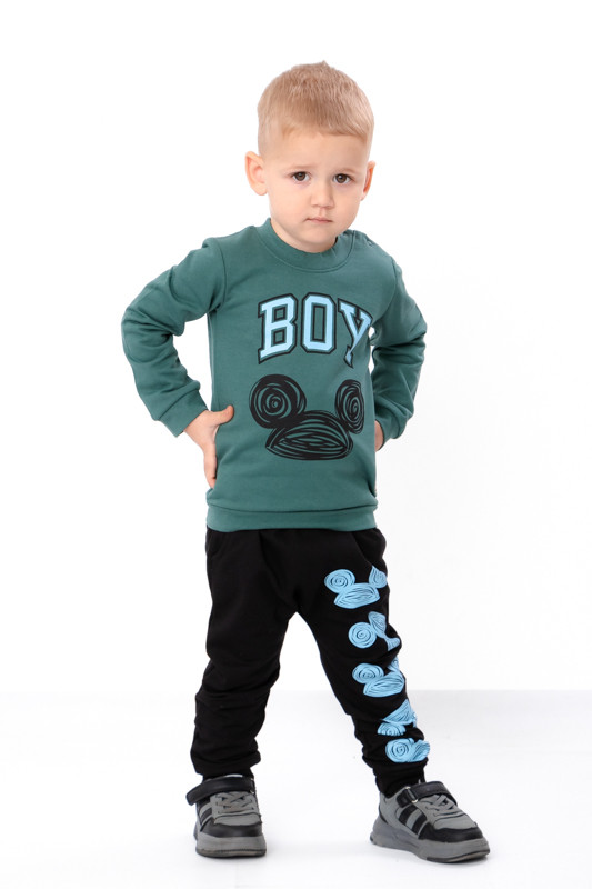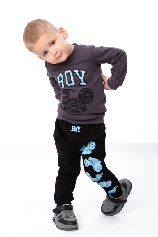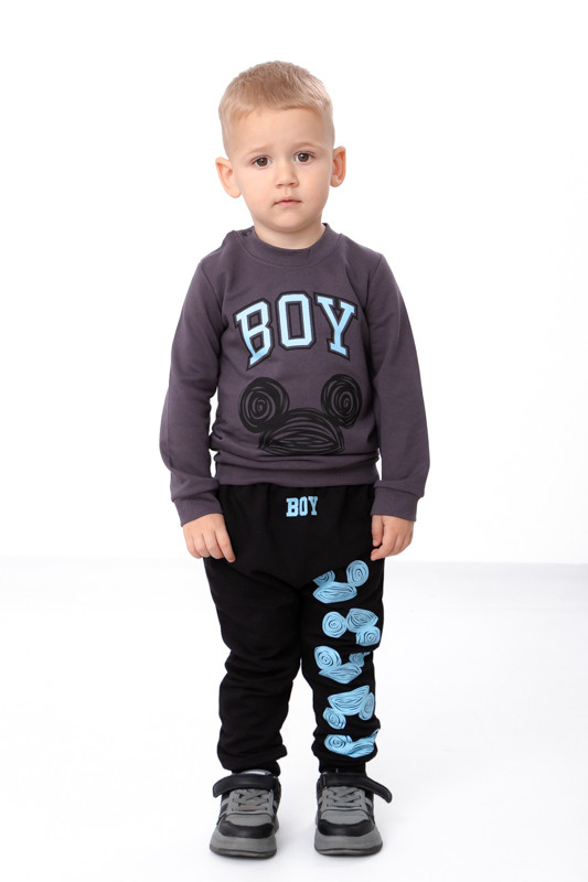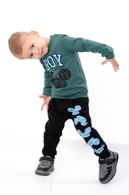 Милий та зручний ясельний комплект для хлопчика, виготовлений з натуральної бавовни. Комплект включає кофту з довгими рукавами, що застібається на дві кнопки, та штани з кишенями, які забезпечують комфортну посадку. Милий принт на виробі надає моделі ніжності та грайливості, роблячи її ідеальною для повсякденного носіння. Завдяки натуральній тканині, комплект дихає і підходить для чутливої дитячої шкіри.