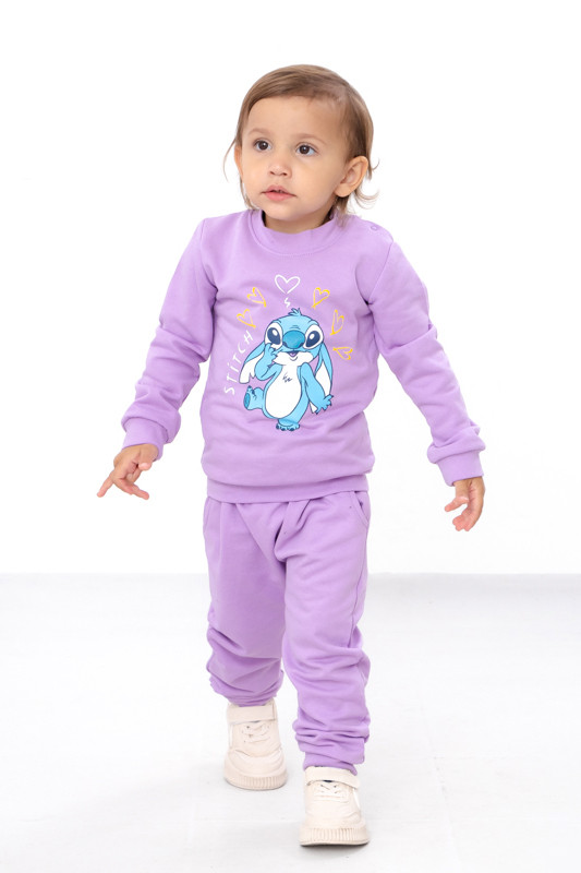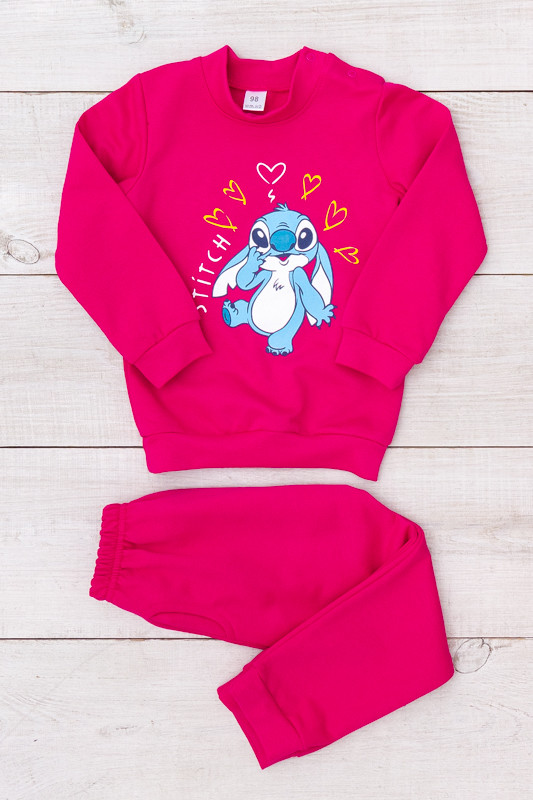 Ясельний комплект для дівчинки з однотонного начосу — це теплий і зручний одяг для вашого малюка. Кофта з довгим рукавом застібається на дві кнопки, що полегшує процес одягання. Принт додає яскравості й веселого настрою. Штани на еластичній резинці з манжетами та кишенями забезпечують зручність і надійно тримаються на талії. Цей костюм ідеально підходить для повсякденного носіння вдома або на прогулянці.