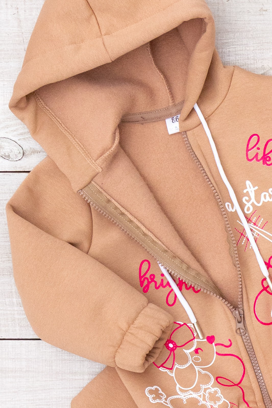 Ясельний комплект ТМ ‘’Трикотажний край’’ виготовлений з якісного футера (тринитка з начосом). Кофта на замку та штанці - ідеальна комбінація дитячого комплекту! Кофточка з принтом смайлика, капюшон оснащений декоративним шнурком, край кофтинки,рукавів та штанців оброблені резинкою. Малюку буде комфортно і дуже затишно в такому комплекті!