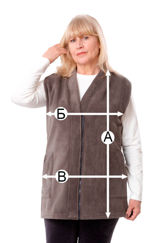 | А - Довжина жилетки, +/-2см | 73 | 74 | 75 | 76 | 77 | 78 | 80 | 82 |