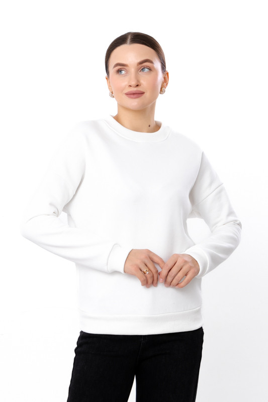 Жіночий світшот, виготовлений з трьохнитки, є незамінним елементом для створення зручного та стильного образу в будь-яку пору року. Його простий, але елегантний дизайн ідеально підходить для повсякденних образів, а також може бути використаний у більш неформальних ситуаціях, додаючи вам комфорту та легкості. Світшот зручний у носінні завдяки м'якому і приємному на дотик матеріалу, що дозволяє шкірі дихати, але водночас зберігає тепло, що робить його ідеальним варіантом для холодних днів.