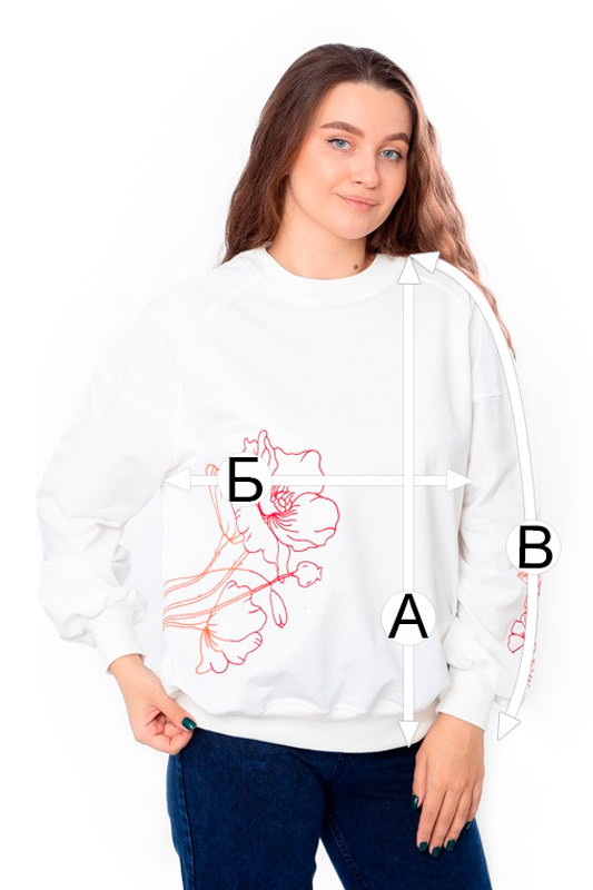 | В - Довжина рукава від горловини, +/-1см | 75 | 75 | 75 | 76 | 76 | 76 |