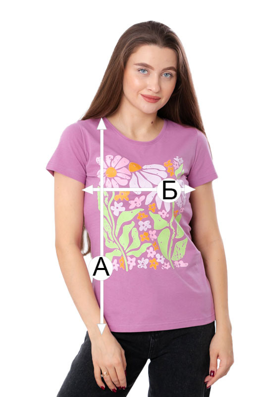 | А - Довжина футболки від плеча (+/-2см) | 64 | 65 | 66 | 67 | 69 | 70 |
