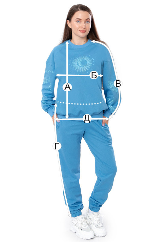 Стильний та зручний костюм складається з джемперу та штанів. Джемпер має вільний крій, округлу горловину, лінія плечей спущена. Штани на широкій резинці з кишенями по бокам. Знизу на штанах манжети з резинкою. В якості декору костюм прикрашено стильним та якісним накатом. Костюм пошитий з однотонної двонитки. Полотно гарної якості. Тому, при правильному догляді, його можна буде носити не один сезон. Може давати усадку після прання.