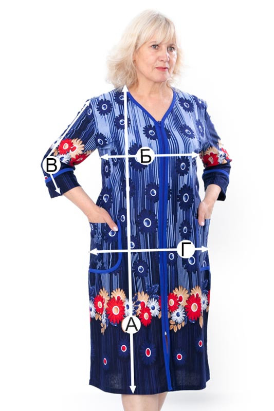 Зручний та практичний жіночий халат вільного крою з подовженими рукавами та округлим вирізом, відмінно підійде для повсякденного носіння. Халат пошитий з легкого трикотажного полотна "реактив". Застібається на блискаву, має дві кишені по боках. Полотно гарної якості, має натуральний склад, при пранні може дати невелику усадку.