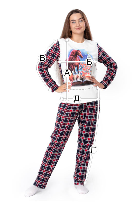 Якщо ви любите зручні та комфортні домашні речі – ця жіноча піжама ТМ «Трикотажний край» вам точно підійде! Затишна піжама складається з футболки з довгим рукавом, декорованої новорічним принтом, та піжамних штанів на резинці. У цій піжамі ви виглядатимете ефектно і красиво в домашній обстановці.