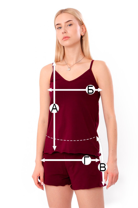 | Г - Ширина шортів по лінії стегон, +/-1см | 47 | 49 | 51 | 54 | 56 | 59 | 62 |