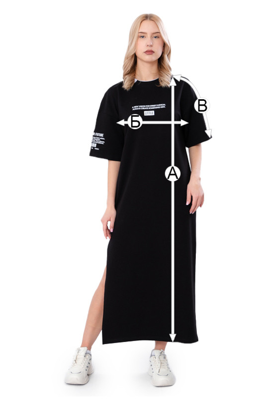 Базова літня сукня для жінок довжиною maxi пошита з однотонної двонитки. Модель прямого силуету з короткими рукавами, має невеликий розріз до коліна. С переду та на рукаві нанесений невеликий принт в якості декору. Полотно гарної якості. Тому, при правильному догляді, сукню можна буде носити не один сезон. Після прання може давати невелику усадку.