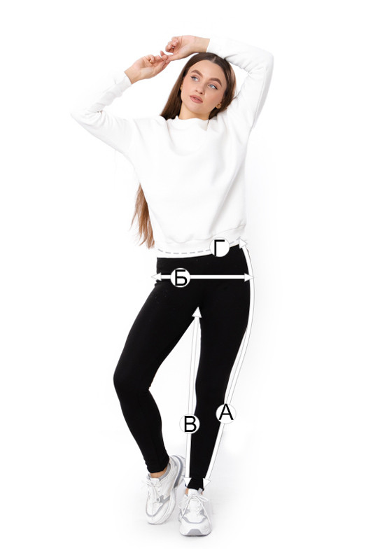В - Довжина лосин по кроковому шву, +/-2см |